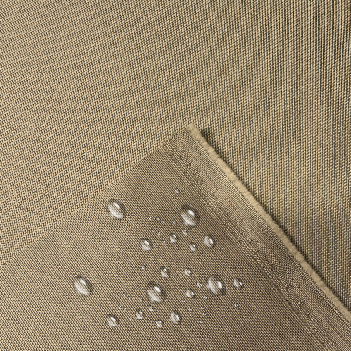 The fabric with linen imitation combines the natural appearance of natural textiles with the technical properties of modern synthetic materials. Thanks to a special treatment, the fabric is water-repellent, resistant to abrasion and mechanical damage, yet it retains softness and comfort to the touch. The outer side is equipped with a waterproof layer, while the inner side has a polyurethane (PU) coating to enhance functionality.