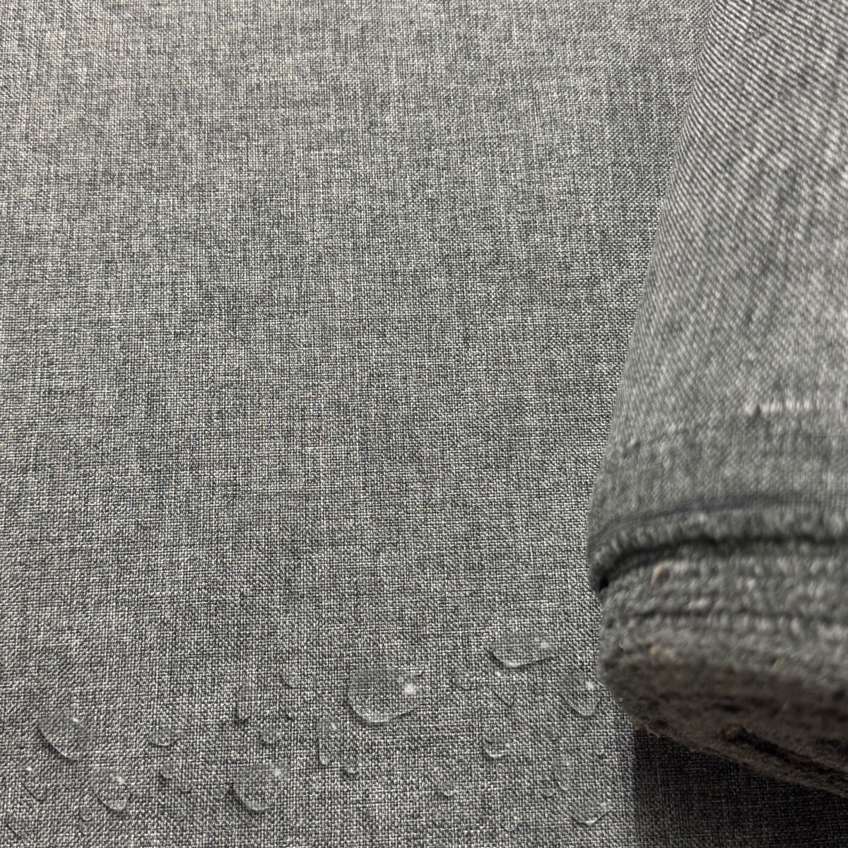 The fabric with linen imitation combines the natural appearance of natural textiles with the technical properties of modern synthetic materials. Thanks to a special treatment, the fabric is water-repellent, resistant to abrasion and mechanical damage, yet it retains softness and comfort to the touch. The outer side is equipped with a waterproof layer, while the inner side has a polyurethane (PU) coating to enhance functionality.