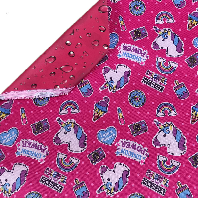 Description Waterproof fabrics CODURA Unicorn on red 1.50 m x 0.2 m
